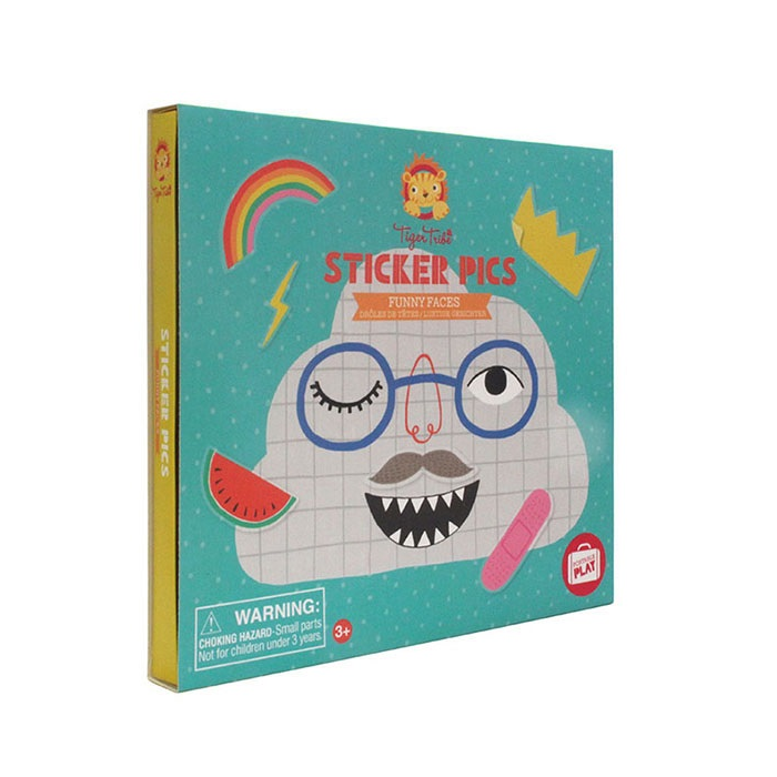 Les Sticker Pics de Tiger Tribe entraîneront vos zygomatiques. Colle les visages aux 8 têtes différentes comme tu veux. Que ce soit en riant, furieux ou avec la langue à l'air - il n'y a pas de limite à ton imagination. L'ensemble comprend 8 cartes et 4 feuilles avec autocollants en PVC. Taille boîte:19,2x17,7 cm