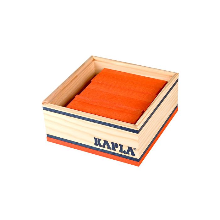 Pour varier vos créations, et les rendre toujours plus originales, Kapla a créé de nouveaux coffrets colorés : 40 planchettes orange, qui viendront harmonieusement s'ajouter à vos planchettes en pin de couleur naturelle.