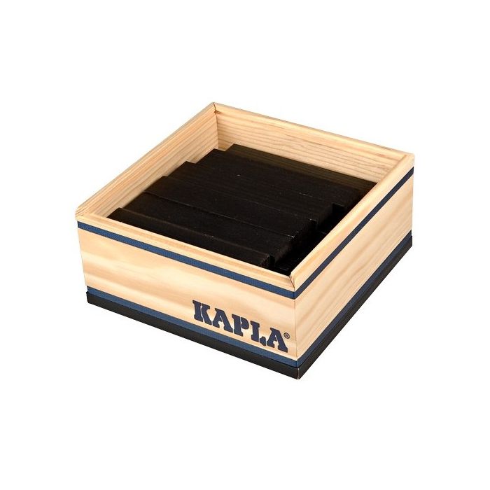 Pour varier vos créations, et les rendre toujours plus originales, Kapla a créé de nouveaux coffrets colorés : 40 planchettes noires, qui viendront harmonieusement s'ajouter à vos planchettes en pin de couleur naturelle.