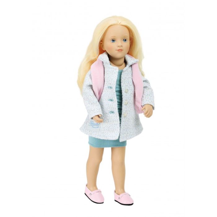 La délicate poupée Constance fait partie de la collection Starlette de Petitcollin. Elle a des cheveux blonds et longs, des yeux peints en bleu et une tenue élégante (mini robe turquoise, manteau de laine, écharpe rose et mocassins assortis). La poupée Constance mesure 44 cm et est entièrement en vinyle. Les cheveux sont cousus et ils peuvent être peignés et coiffés. Tout simplement un rêve pour chaque maman poupée et un cadeau parfait pour Noël ou pour un anniversaire ! Fabriqué en Europe, à partir de 3 ans.