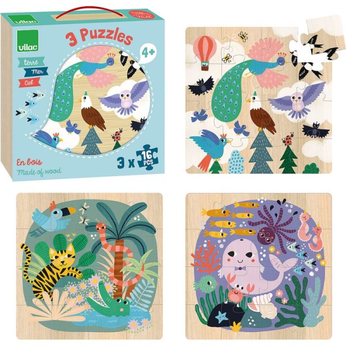 Puzzle Set Erde Meer Himmel 3x16, Michelle Carlslund, Vilac
