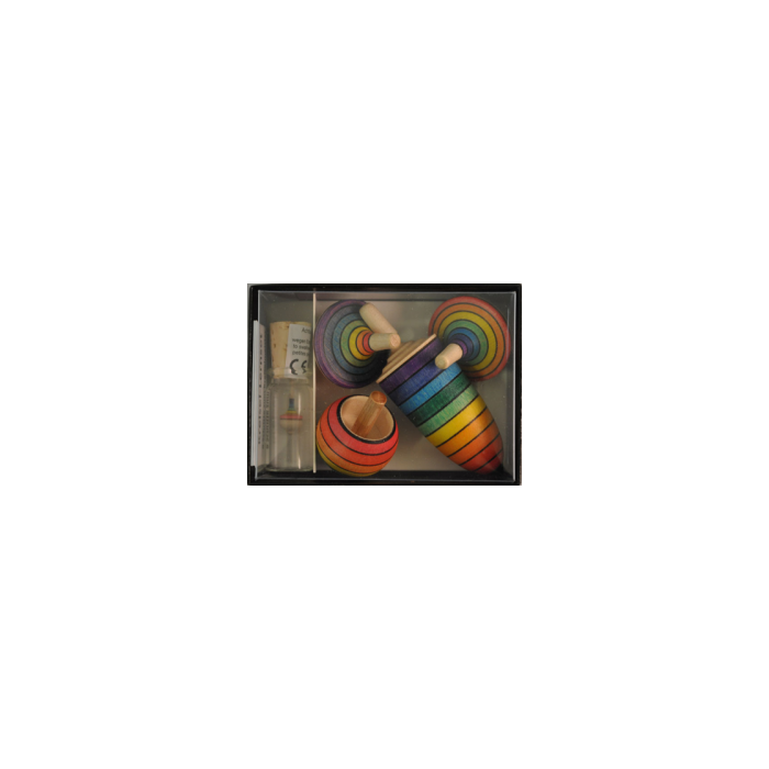 Kit d'apprentissage pour toupie avec 5 toupies de niveau très facile à très difficile, avoir du succès en jouant, avec instructions, niveau de difficulté 1 à 6, bandes dans les couleurs de l'arc-en-ciel.