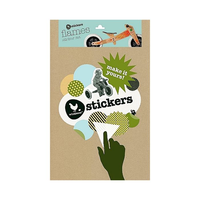 Pochette de stickers Flammes de Wishbone Vraiment une super bonne idée ces autocollants Wishbone ! Ils décoreront les beaux vélos Wishbone et même leur cadre et leurs roues. Le véhicule de votre enfant sera ainsi transformé en un modèle unique ! Quantité par pochette : 40 autocollants.