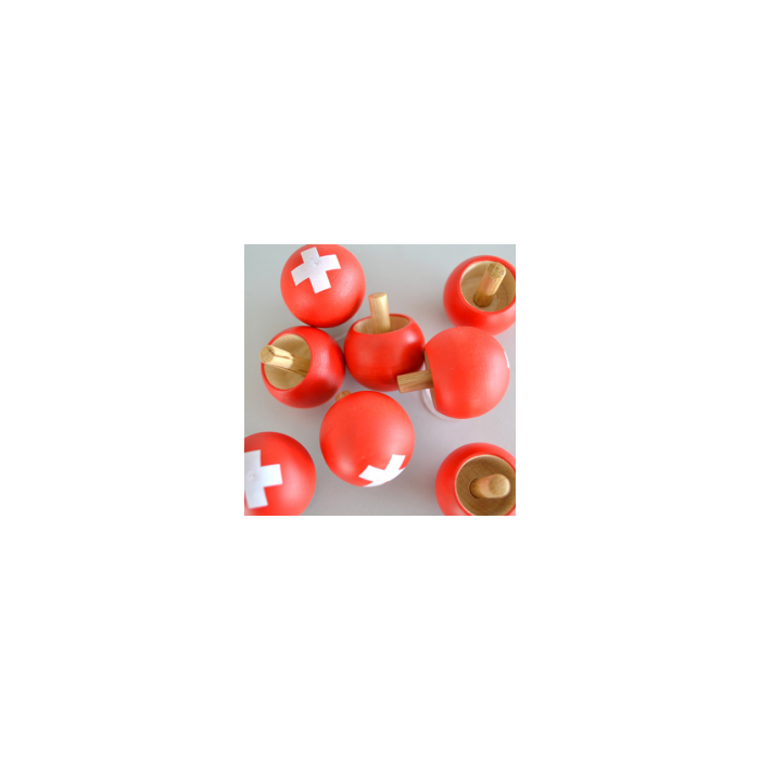 La toupie à revers est une toupie physiquement spéciale qui tourne à l'envers en tournant. Elle a été brevetée par H.Sperl le 7 octobre 1891, en bois dur, rouge avec croix Suisse, Ø 32mm.