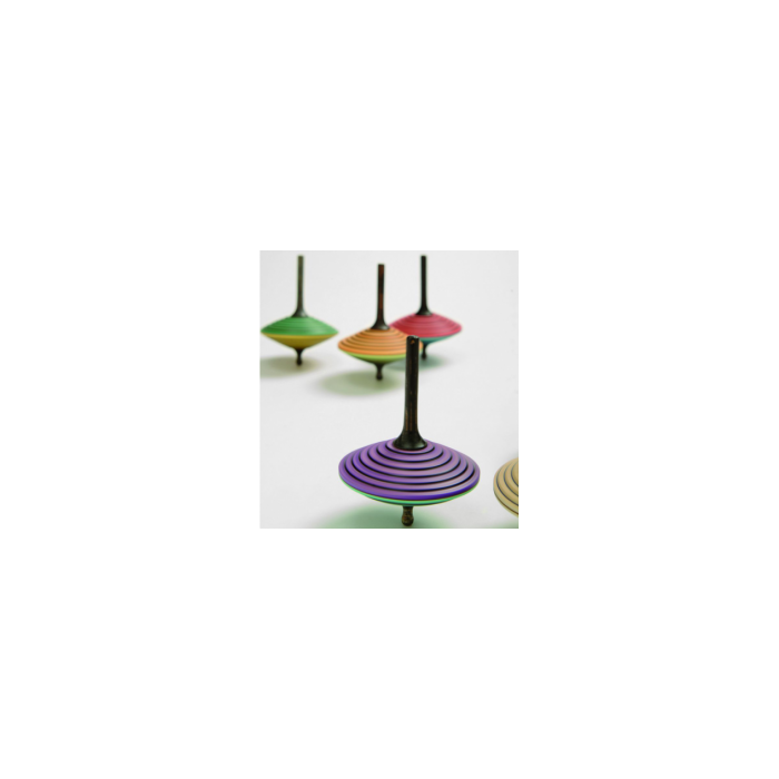 Toupie à deux mains facile à mettre en marche, peut aussi être tourné avec les doigts pour les utilisateurs expérimentés, en trois parties, collé avec des cônes, coloré, érable, 6 couleurs différentes, manche et pointe en chêne noirci, Ø 75mm