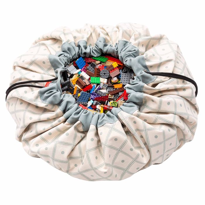 Le rangement des jouets est un drame dans votre maison ? Vous les retrouvez sous le lit ou les meubles, dans le panier du chien et parfois vous ne retrouvez pas le jouet favori de votre enfant ... Essayez les sacs de rangement Play & Go ! Ce sac de rangement 2 en 1 vous permet de ranger et transporter les jouets très facilement et se transforme en tapis de jeu là où vous le posez. Le stockage de tous les jeux, des Lego en passant par les poupées et les voitures, les cubes et les balles, sera désormais très simple ! Le sac de rangement Play & Go mesure 140 cm de diamètre et est 100 % coton. Sa praticité et sa résistance en font un sac de rangement parfait pour la plage, le parc, les vacances ou les voyages. Les sacs Play & Go sont faits de coton de haute qualité, et respectent les normes environnementales mondiales. Nouveau, dans un design moderne !